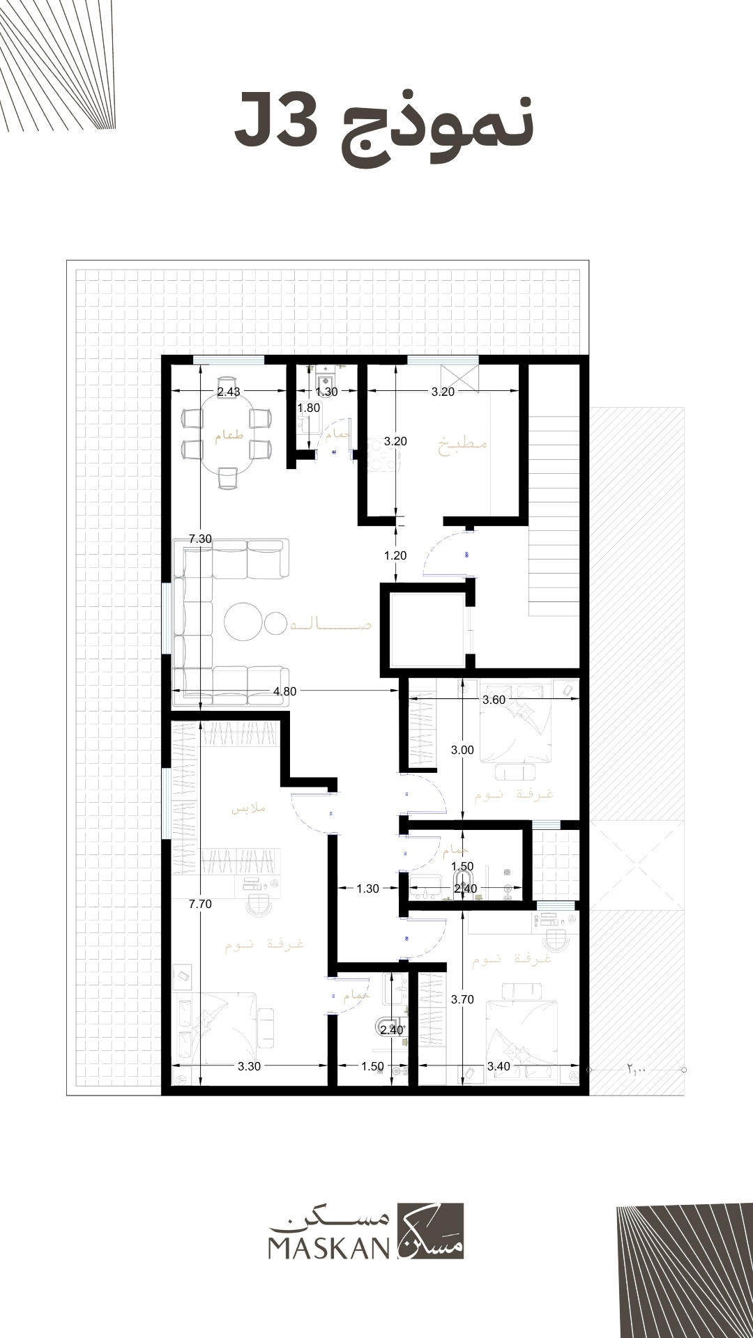 م نموذج J3 تجربة سكنية متكاملة تجمع بين الرحابة، الخصوصية، وحسن توزيع المساحات.
